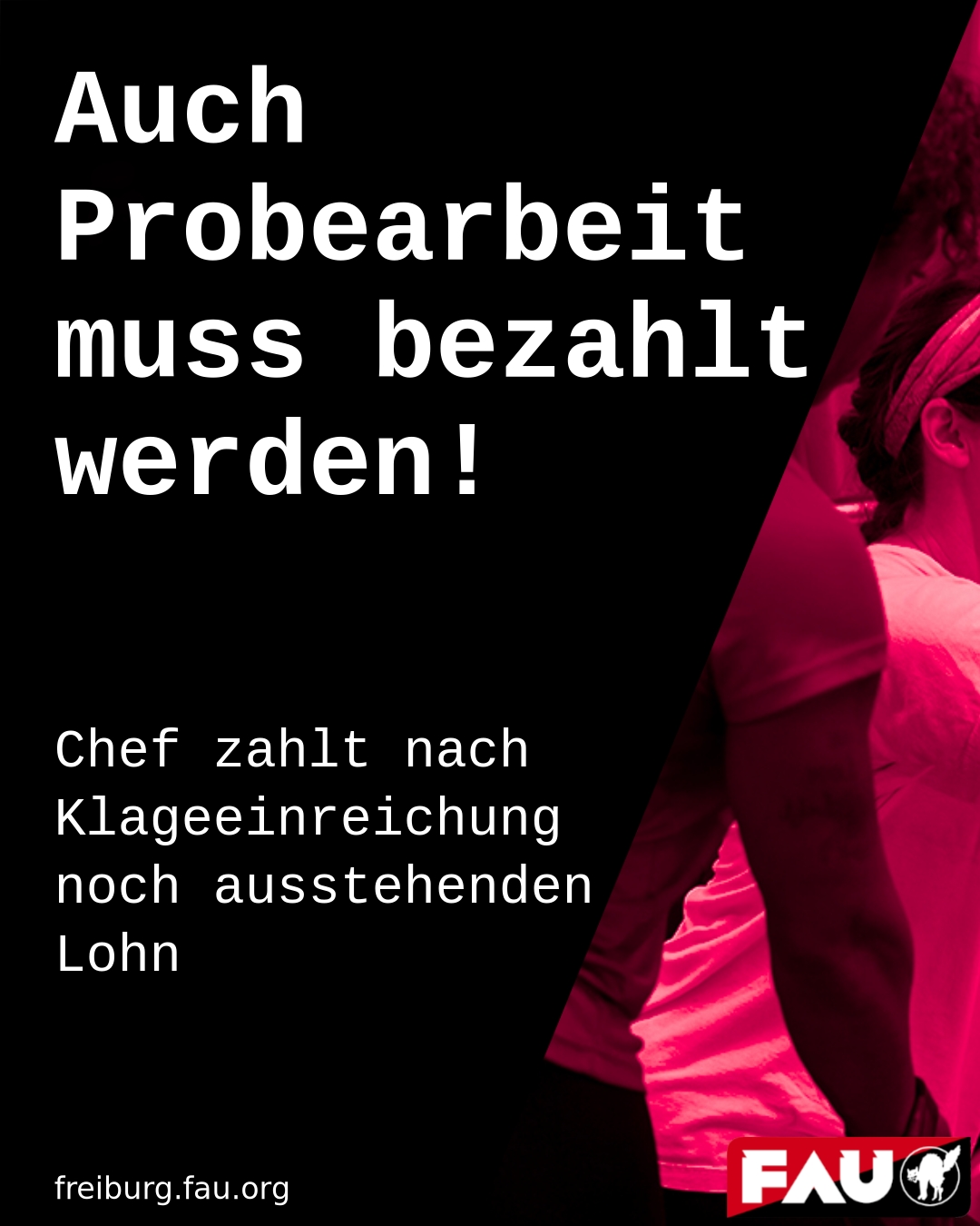Manche Unternehmen nutzen die Unwissenheit vieler Arbeiter:innen immer wieder aus und prellen diese um ihren Lohn: Auch im vorliegenden Fall „probearbeitete“ eine Mitarbeiterin des FAU-Mitglieds schon sage und schreibe 6 Wochen ohne Bezahlung!